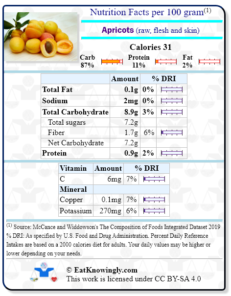Nutrition Facts for Apricots (raw, flesh and skin) with Daily Reference Intake percentages